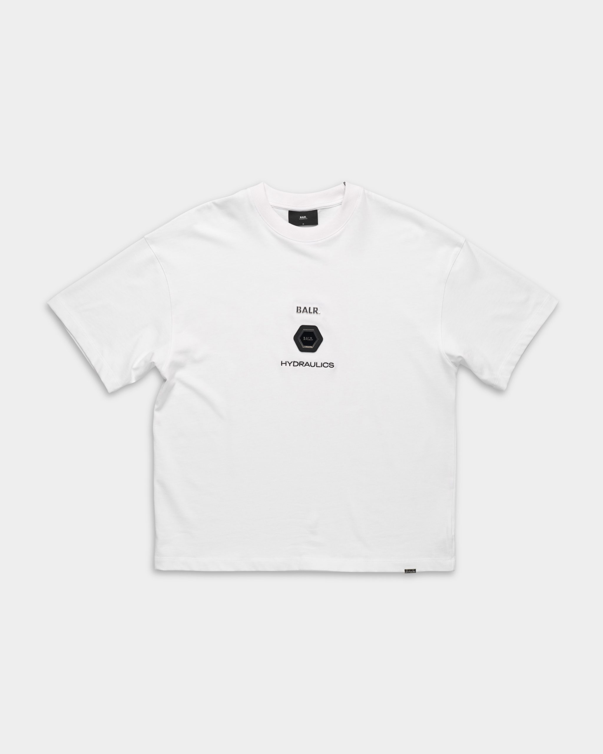 Introducing the exclusive BALR. x Hydraulics collaboration tee. Designed with a classic crewneck and regular fit, this piece delivers premium comfort and a sleek everyday look. The front showcases the signature BALR. branded badge with a subtle Hydraulics print beneath, creating a clean and modern finish.Versatile and easy to style, this limited-edition t-shirt is a wardrobe staple that reflects the refined aesthetic of both brands.