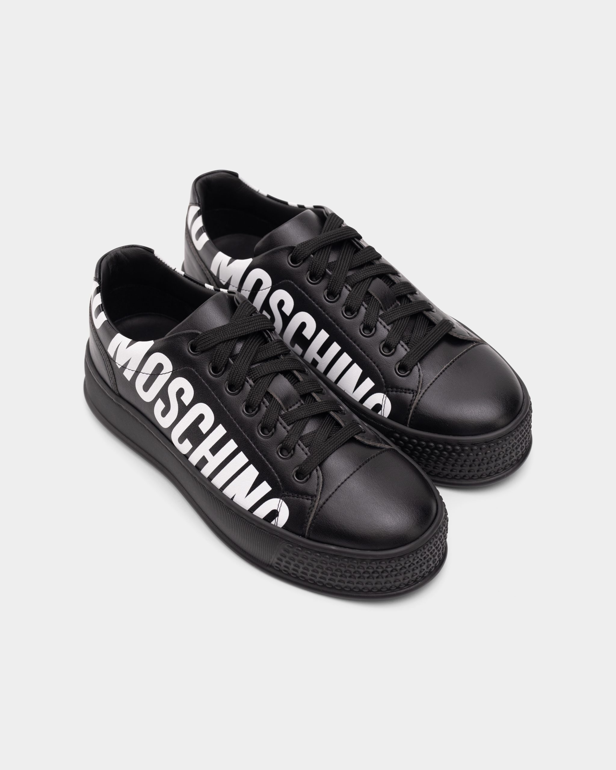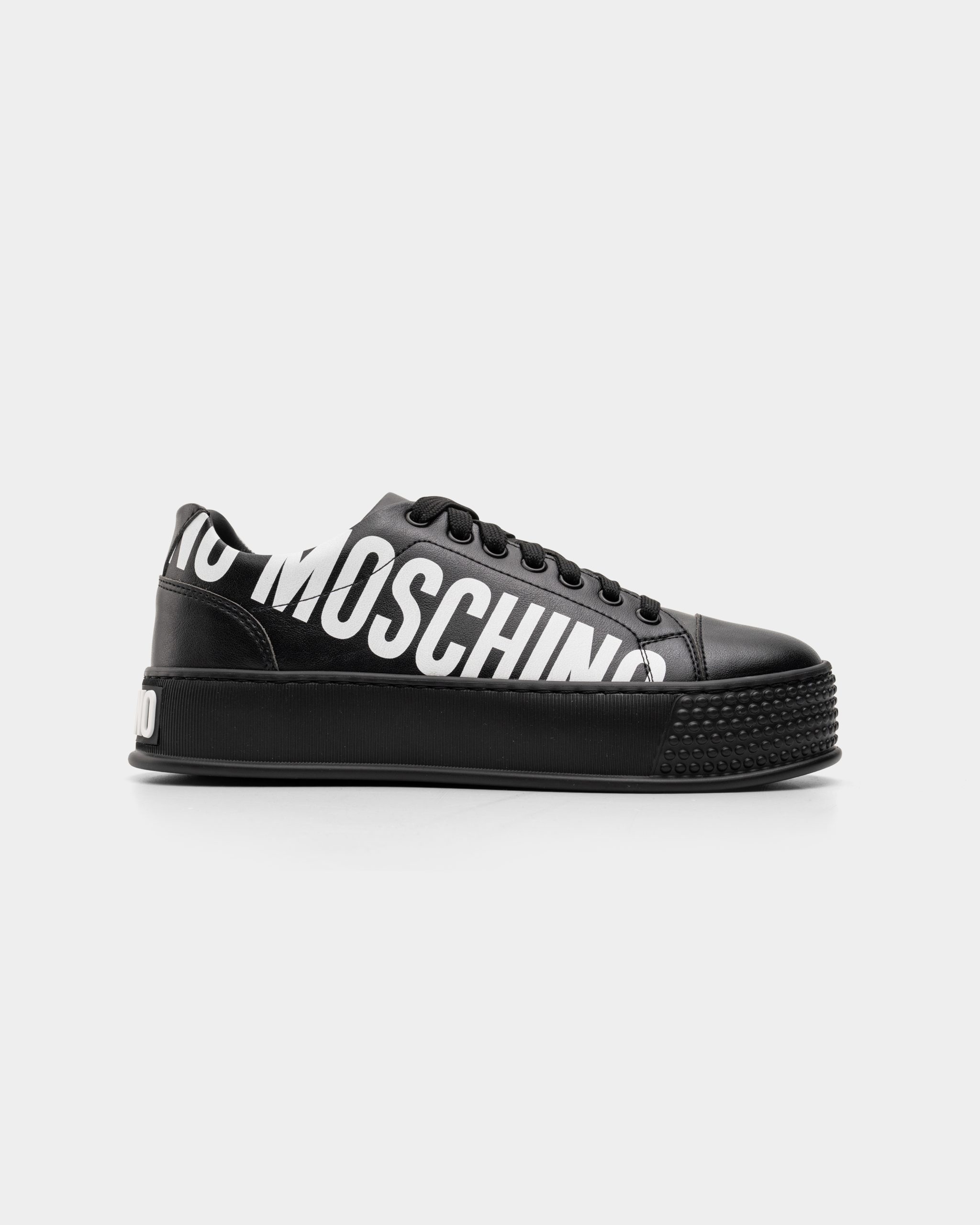 Specially made unit – designed together with Moschino to produce this chunky creeper style sneaker. Branded with contrast Moschino logo on sides and back