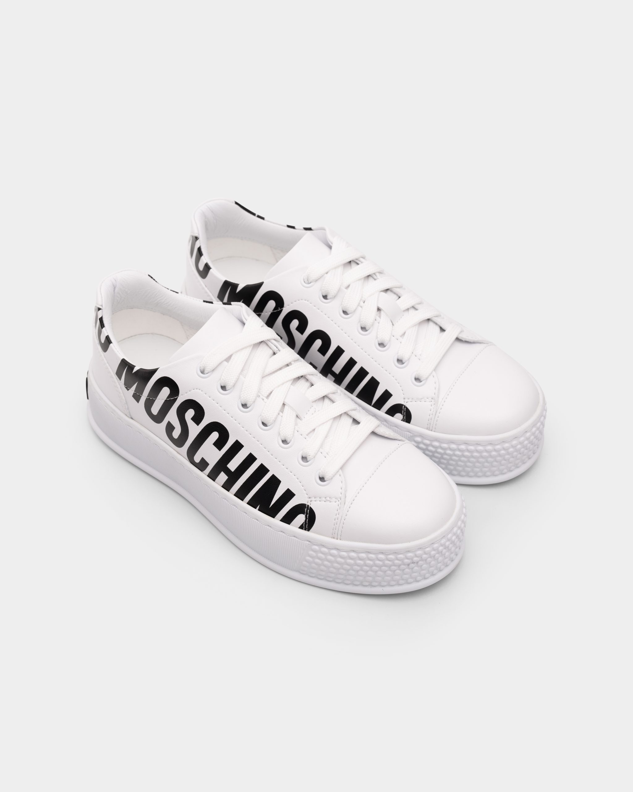Specially made unit – designed together with Moschino to produce this chunky creeper style sneaker. Branded with contrast Moschino logo on sides and back