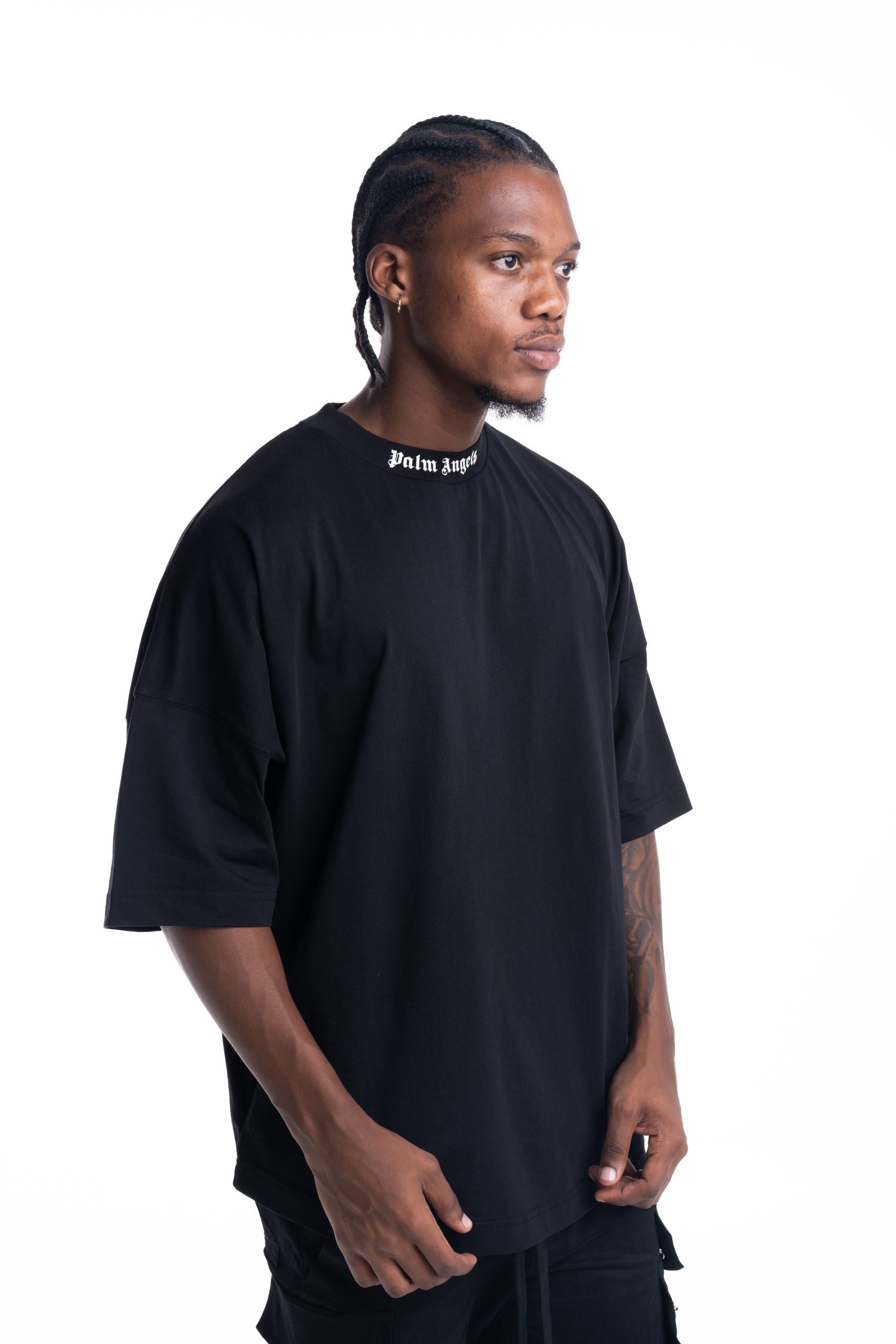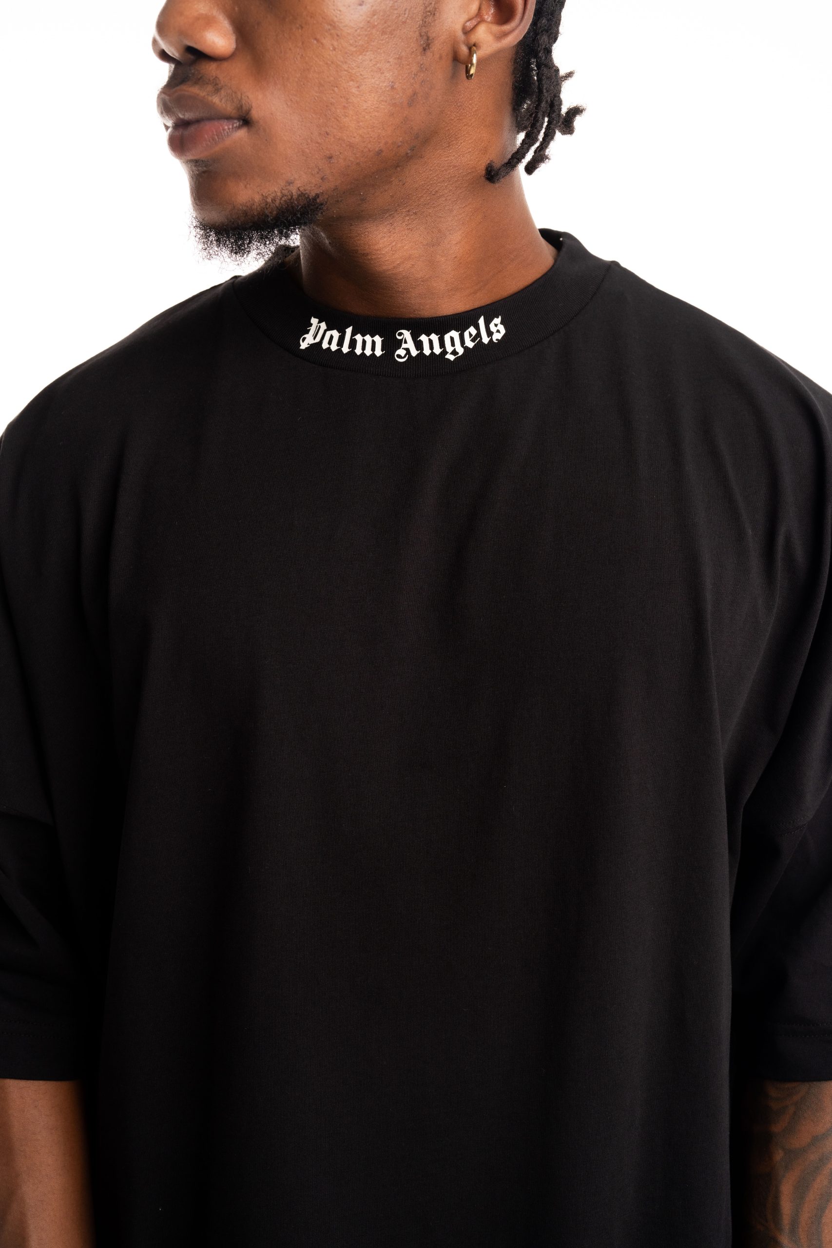 Palm Angels Men's Curved Logo Loose Double Tee | PMAA10QS26JER001-1010