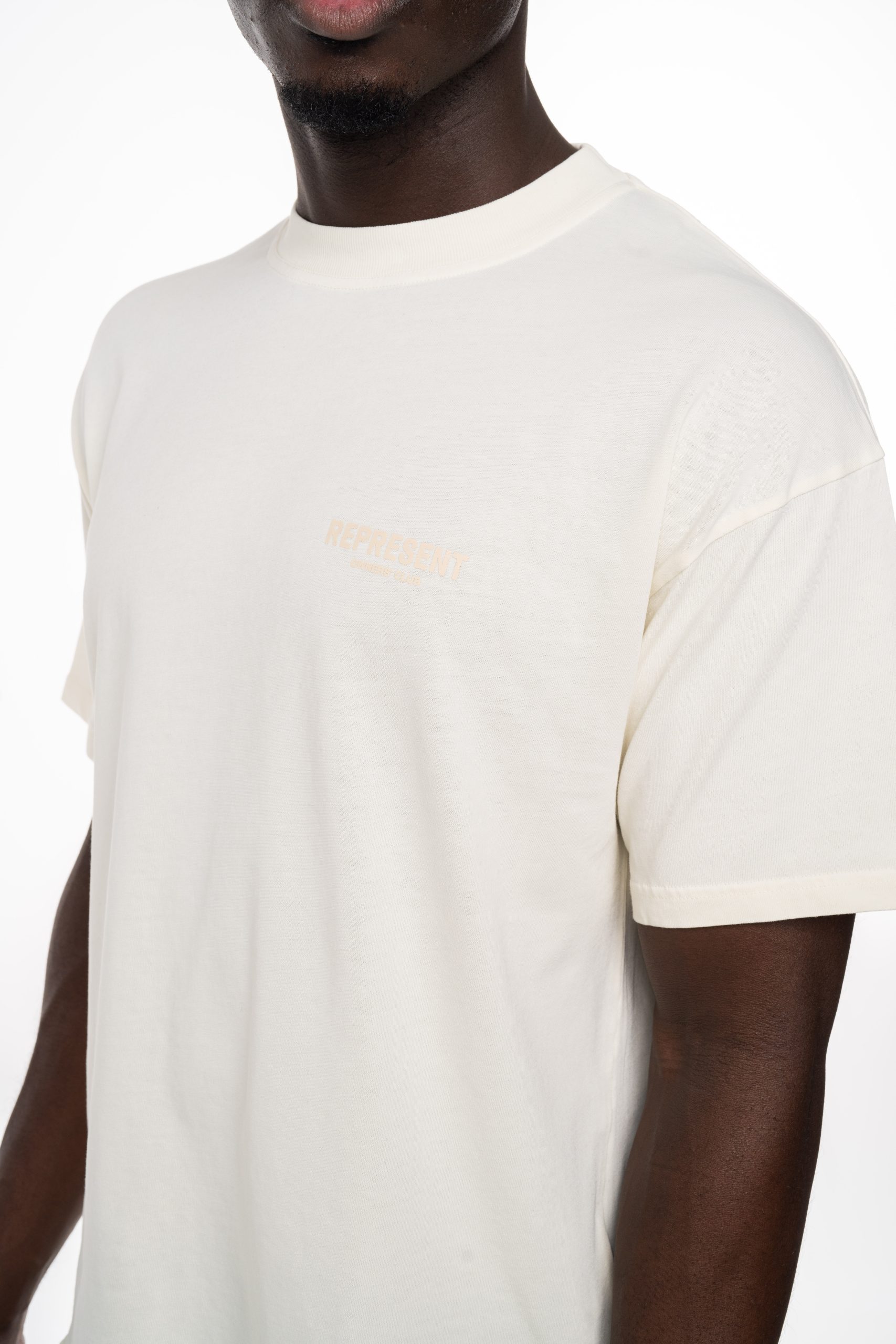 Introducing the Owners’ Club T-Shirt in Buttercream, a short sleeve jersey tee, crafted with a slightly oversized fit in a medium weight cotton. The Owners’ Club T-Shirt has a ribbed crewneck collar, with Owners’ Club branding to the rear and chest. The T-Shirt is finished with a Represent metal bar to the hem.