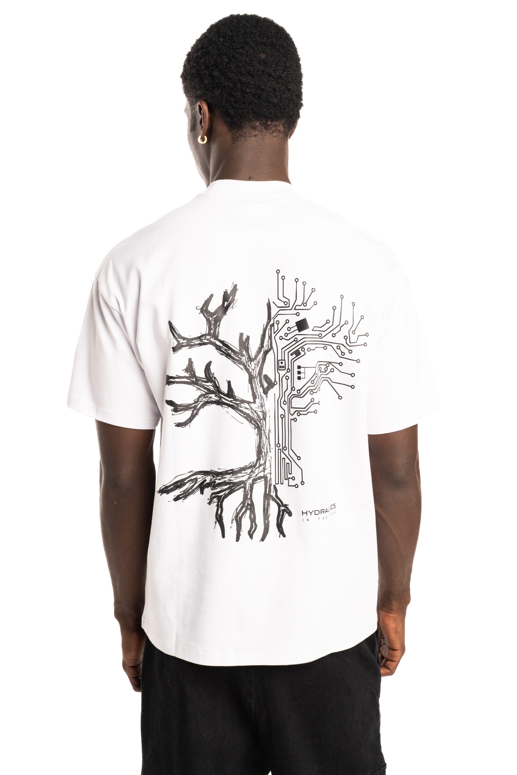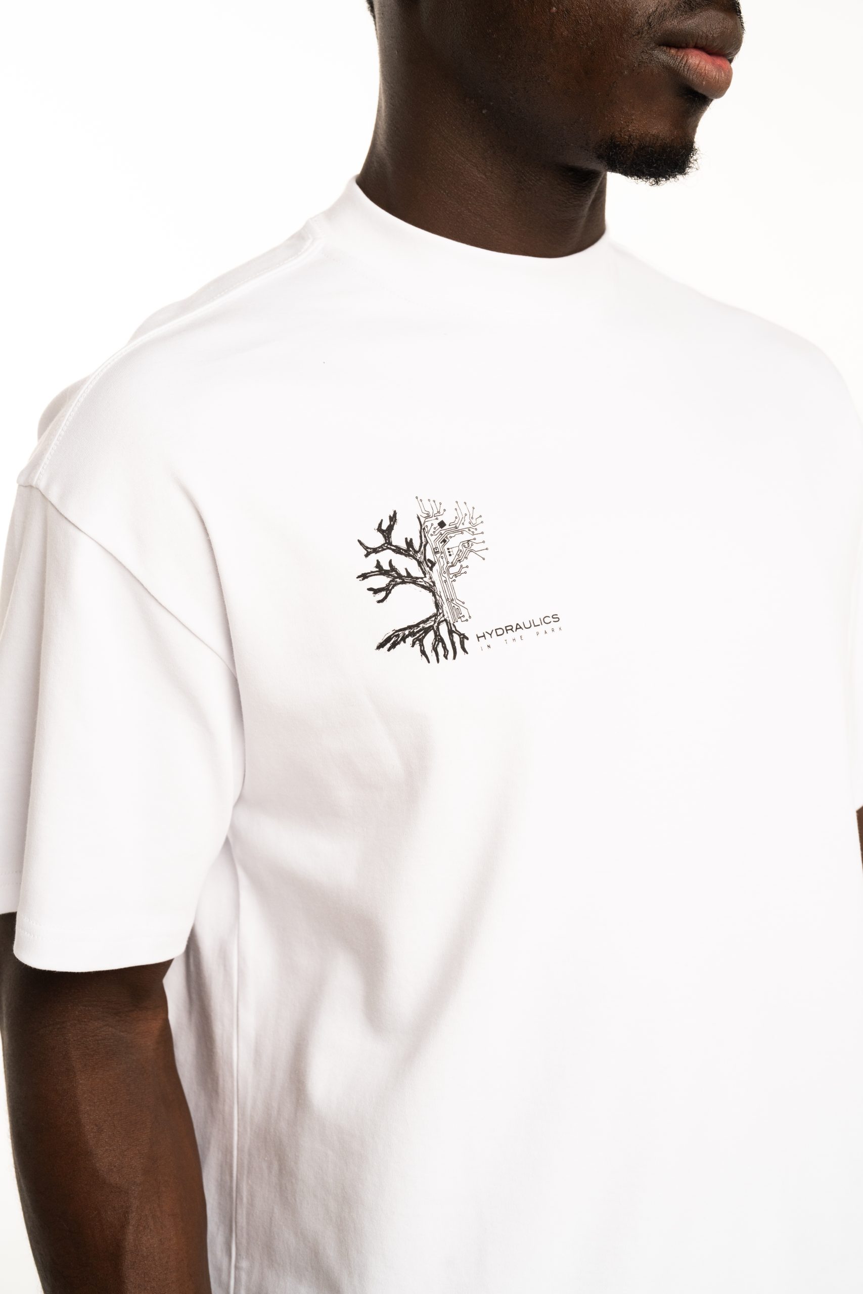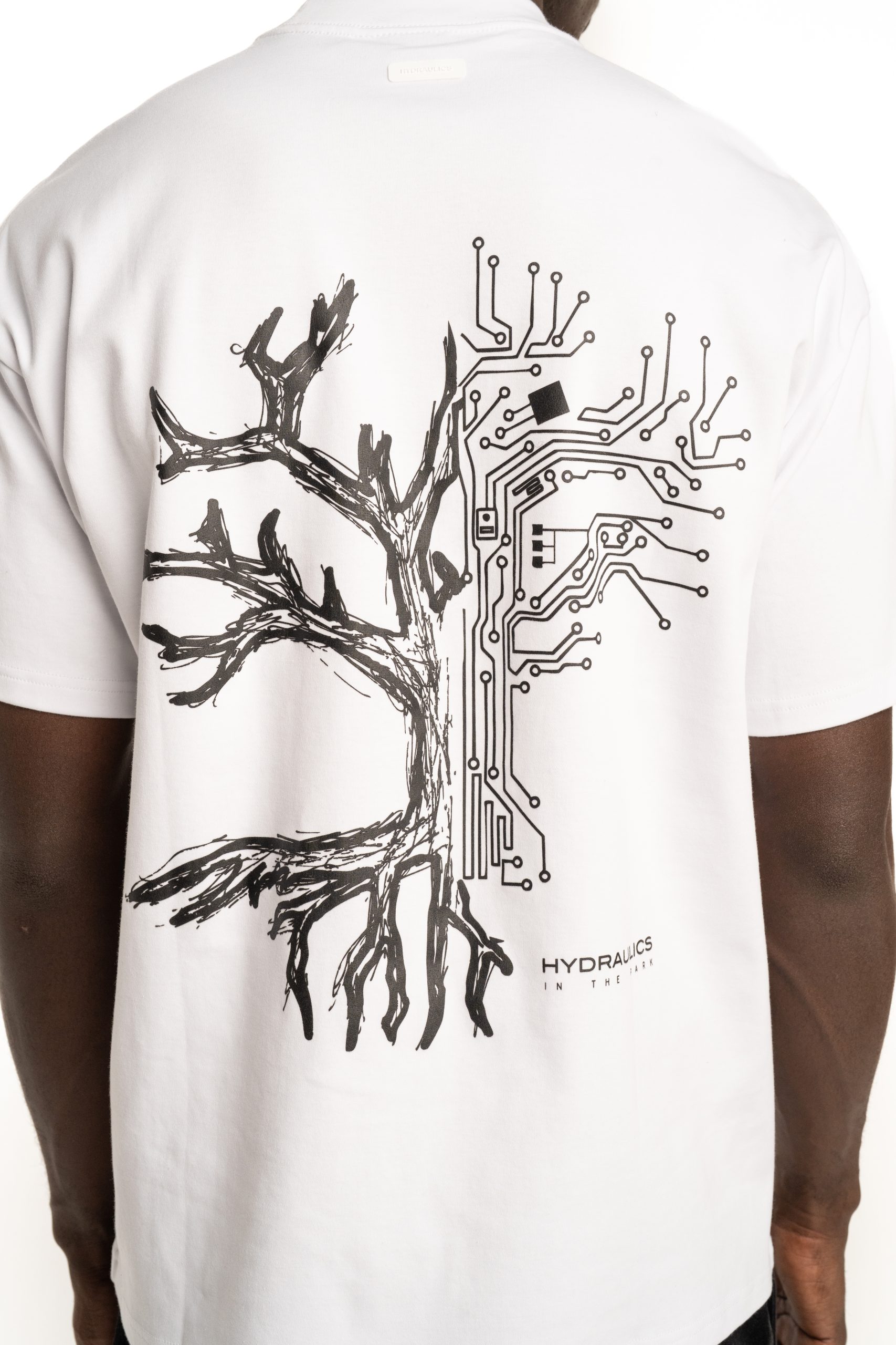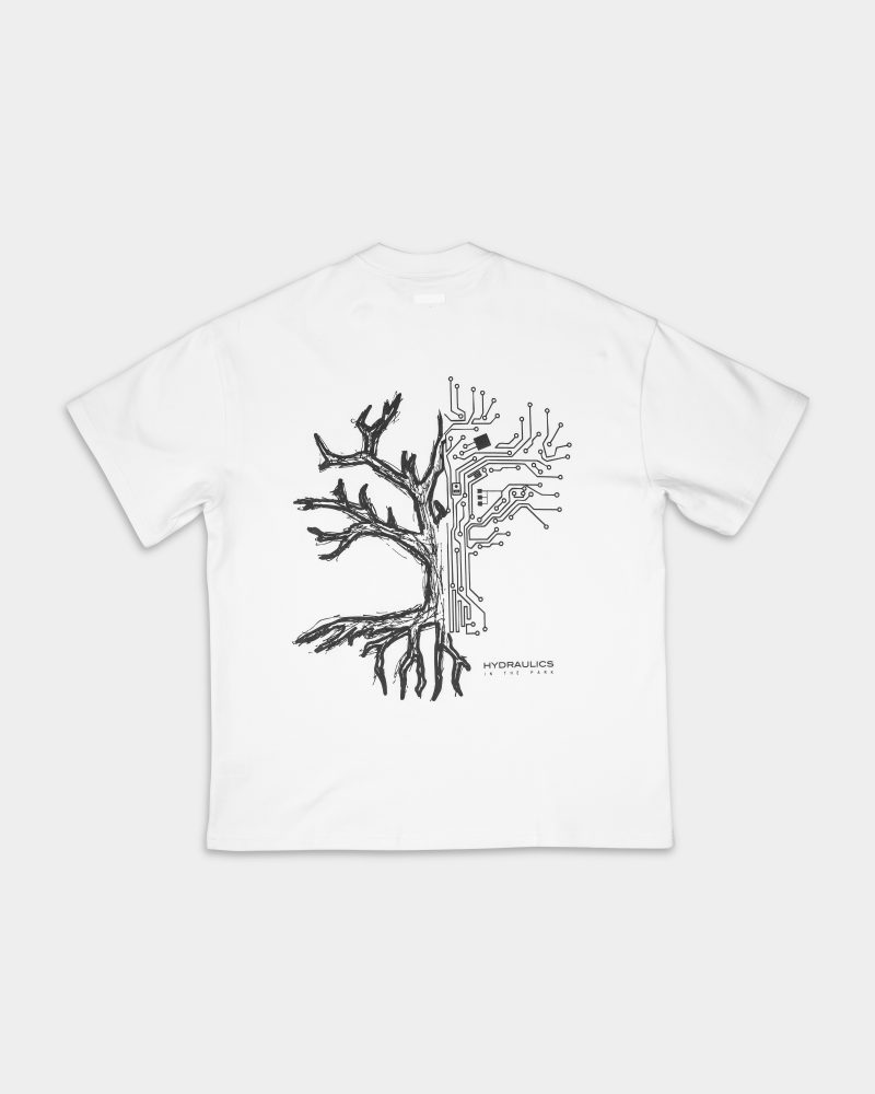 Introducing the Hydraulics In The Park tee, created with a hand drawn sketch featuring half a tree in its organic form and half transformed into the lines of a motherboard, a symbol of the balance between the natural world and modern innovation. Blending nature and technology into one striking graphic. This piece reflects the Hydraulics vision of creation, rooted in tradition yet always wired into the future. It pays homage to the way environments, both natural and constructed, inspire the world we build around us. Crafted from 100% BCI cotton, with a lightweight yet substantial 230GSM fabric for summer.