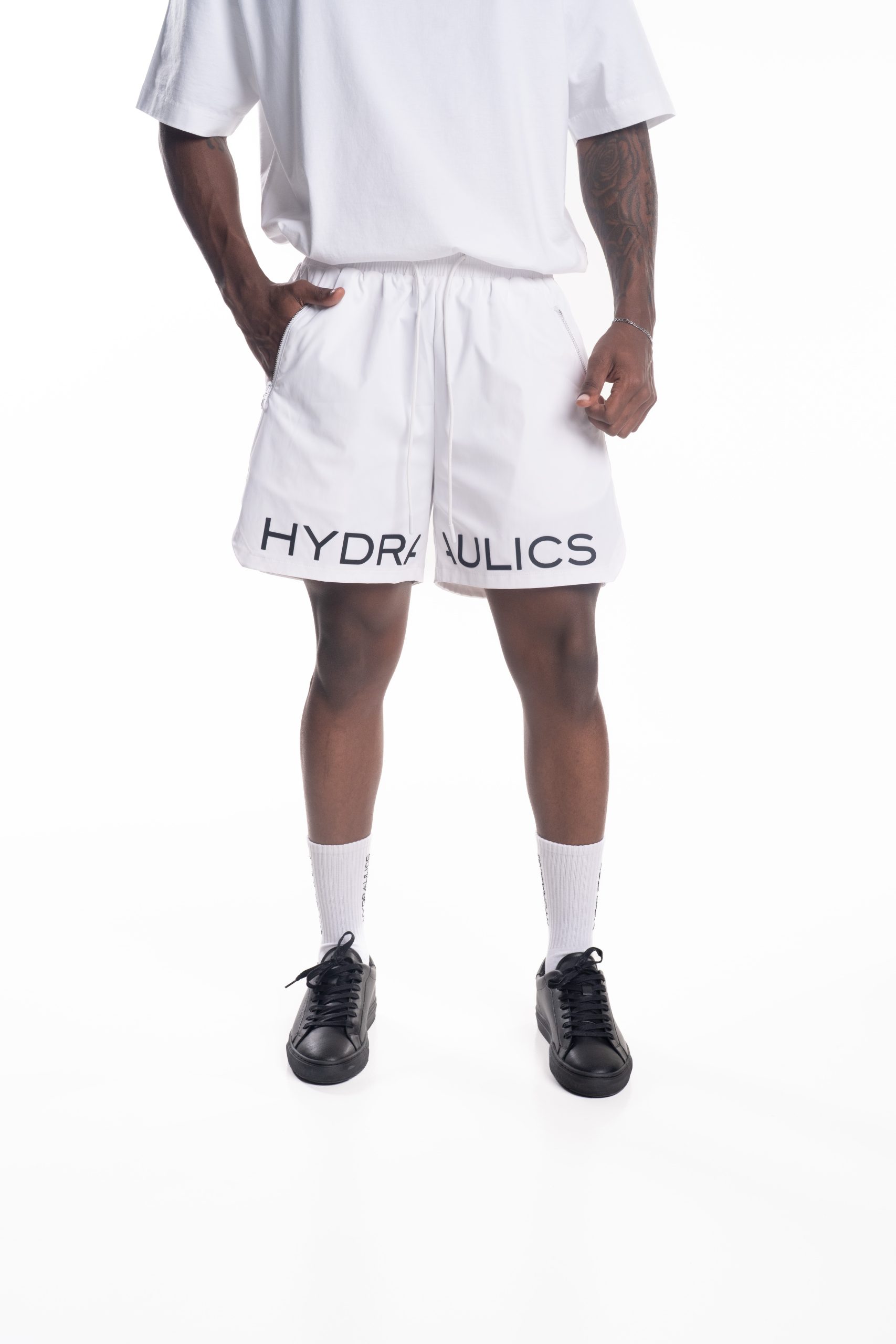 Introducing the Hydraulics nylon shorts, featuring bold branding across the thigh hem area and finished with secure zipped pockets for functional, everyday wear.