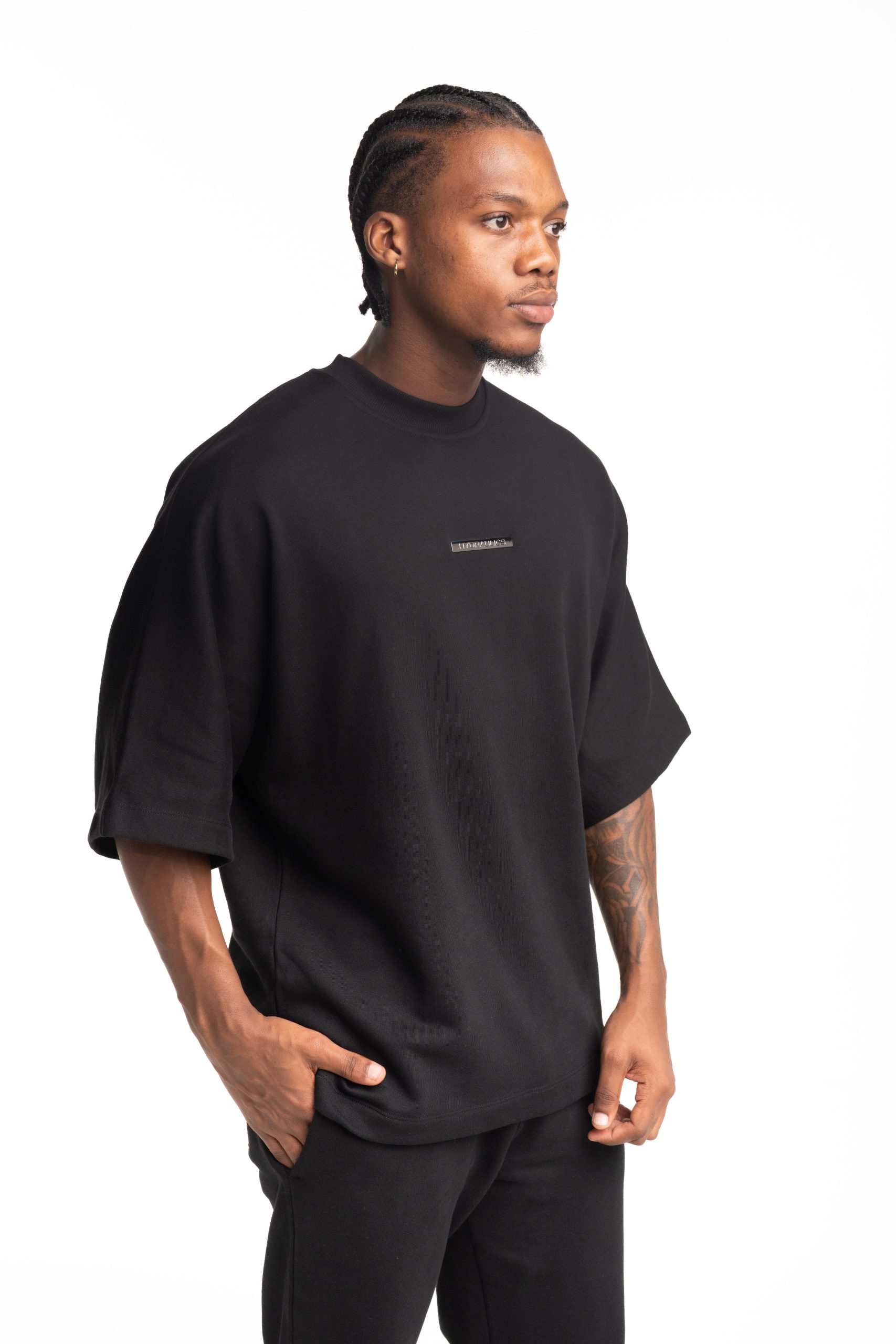 Introducing the Metal Badge Fleece Tee from our new collection, crafted from premium 340 GSM fabric for a structured, high-quality feel. Elevate your everyday essentials with this heavyweight piece, designed for comfort, durability, and a sleek modern aesthetic. Finished with a metal steel badge on the chest, it adds a subtle yet bold statement to a clean, minimal design. Built with an oversized fit, it delivers a relaxed silhouette perfect for effortless everyday wear