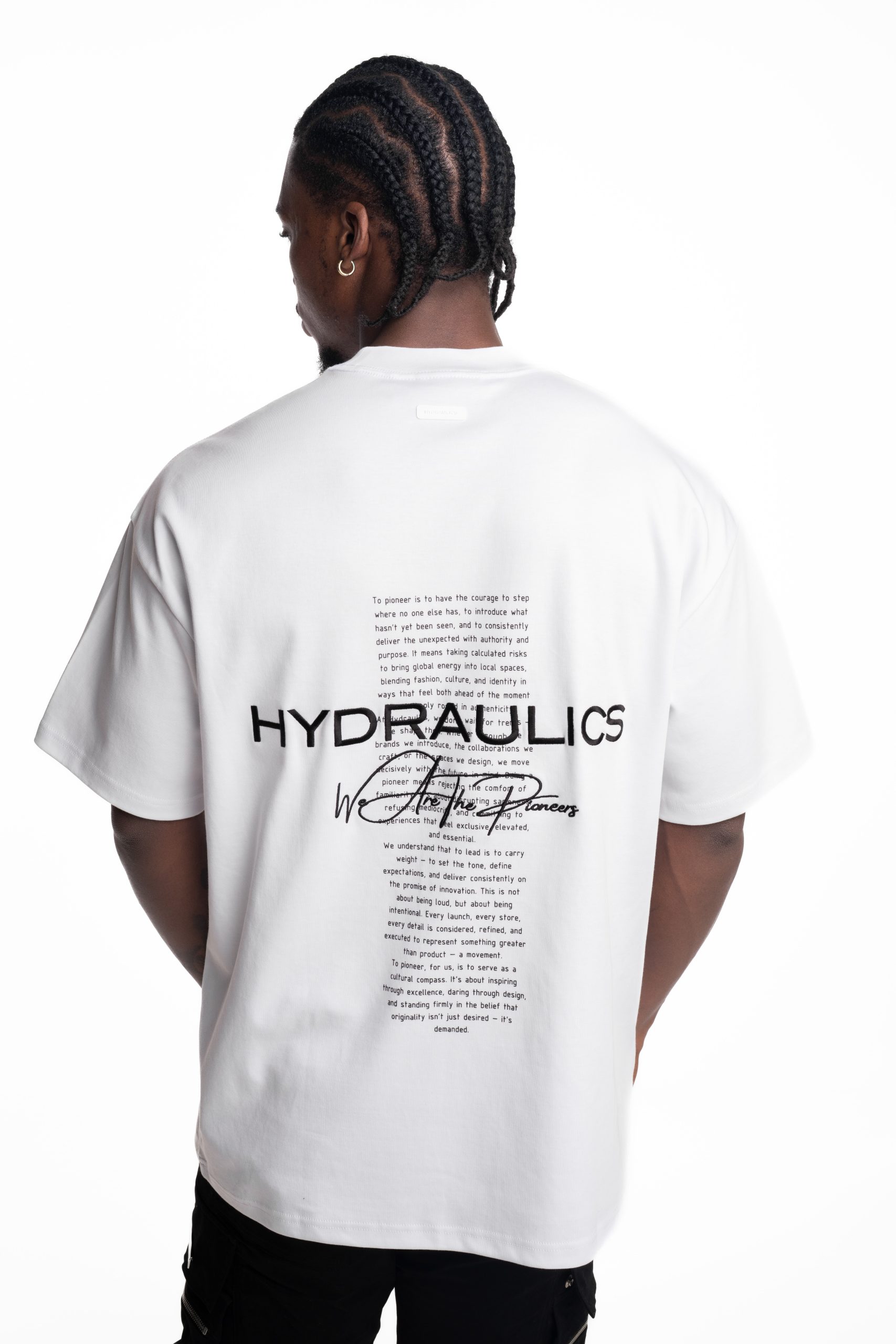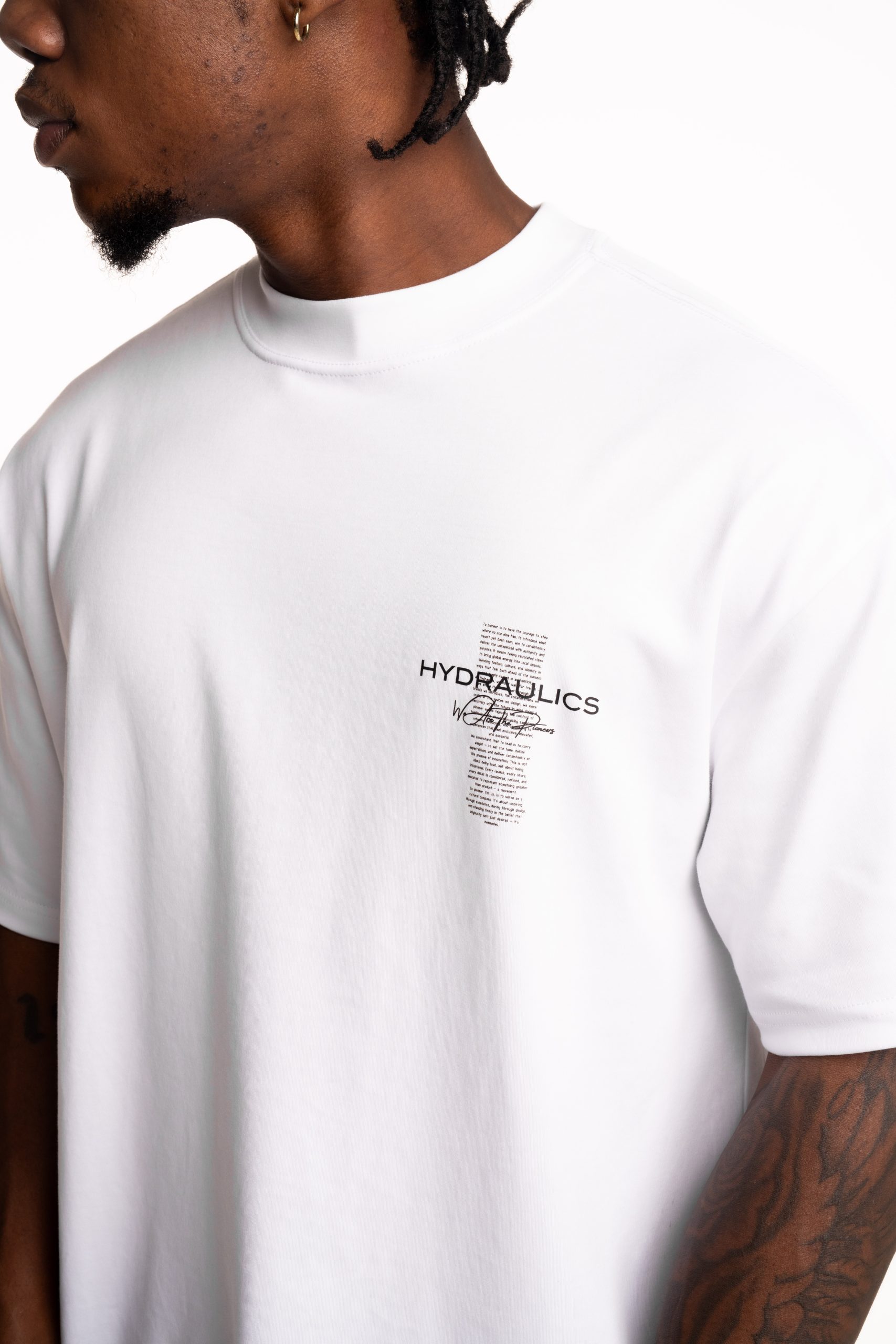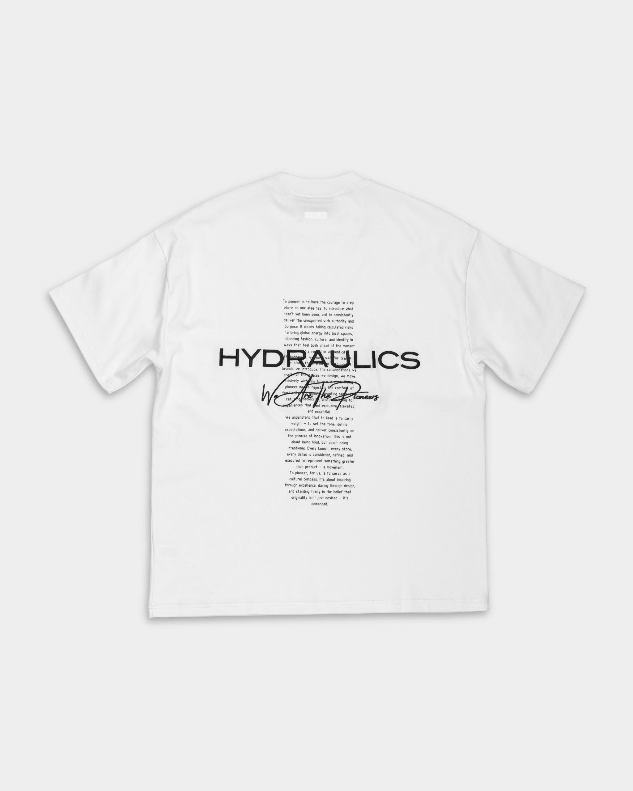 Introducing the Hydraulics We Are The Pioneers t-shirt from our new collection, crafted from premium 230 GSM fabric for a structured, high quality feel. Designed in a clean white base, it features a bold back graphic with the “We Are The Pioneers” statement, blending strong branding with a modern aesthetic. Finished in an oversized fit, this piece delivers a relaxed silhouette for all day comfort while elevating your streetwear rotation.