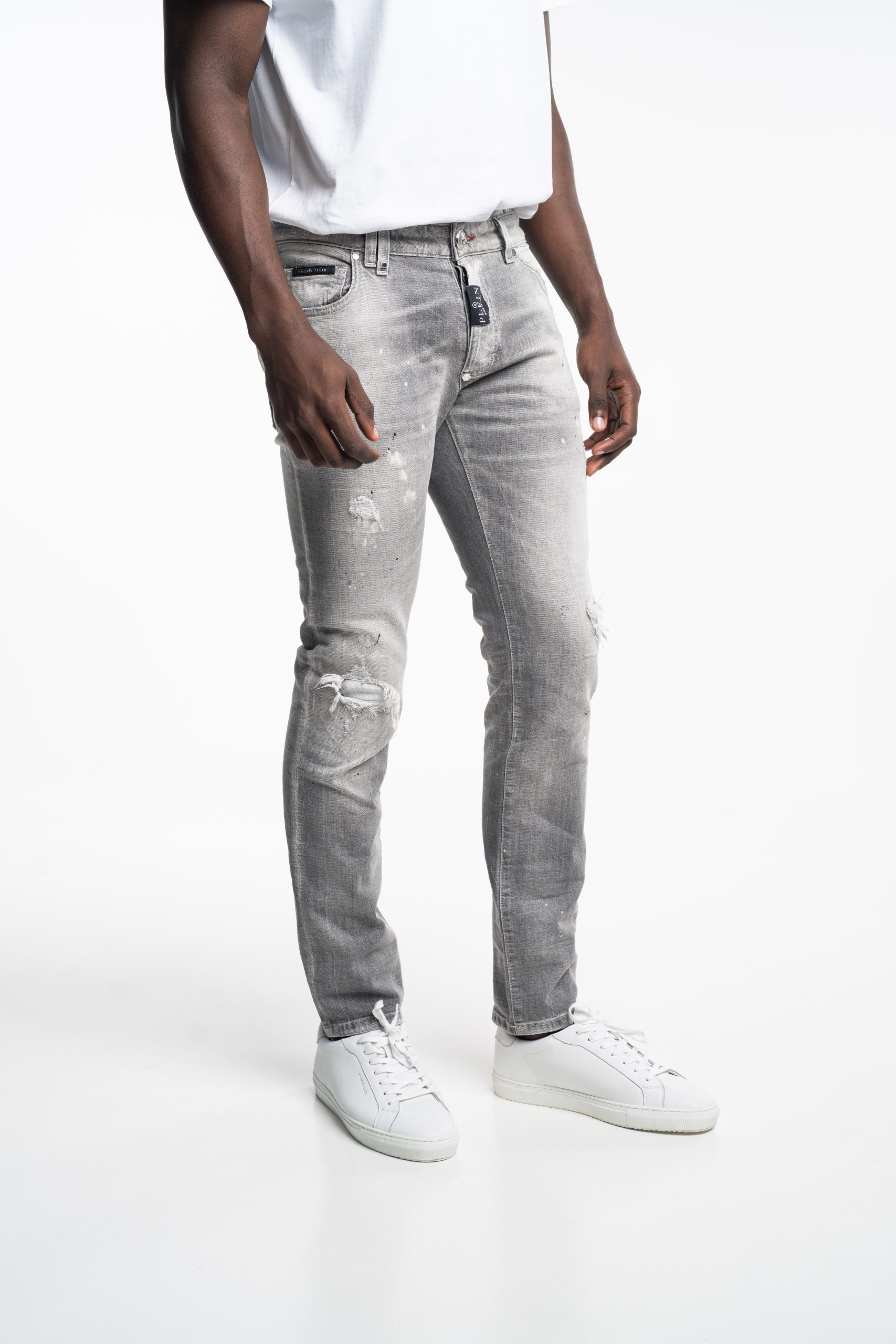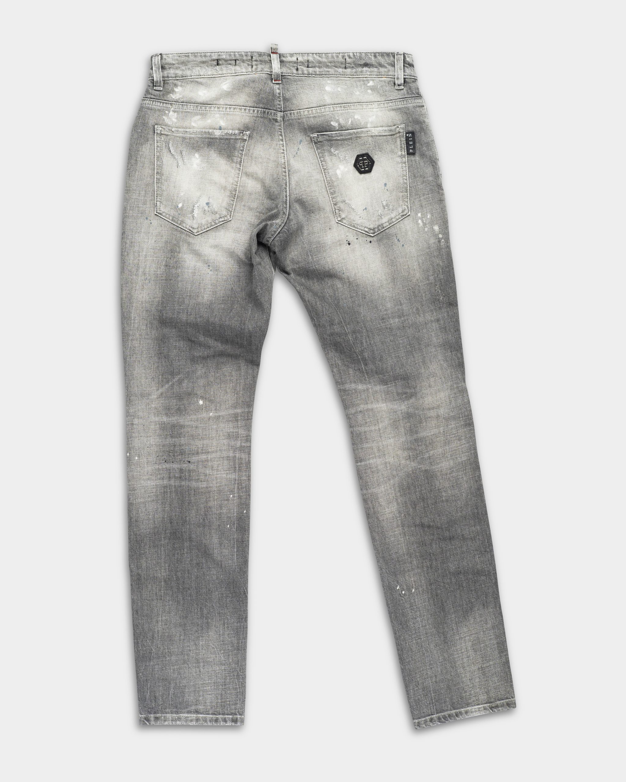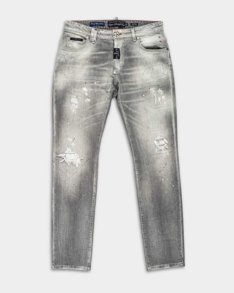 Philipp Plein Men’s Denim Super Straight Cut Trousers Concrete Grey MDT3943 PDE004N 10GX