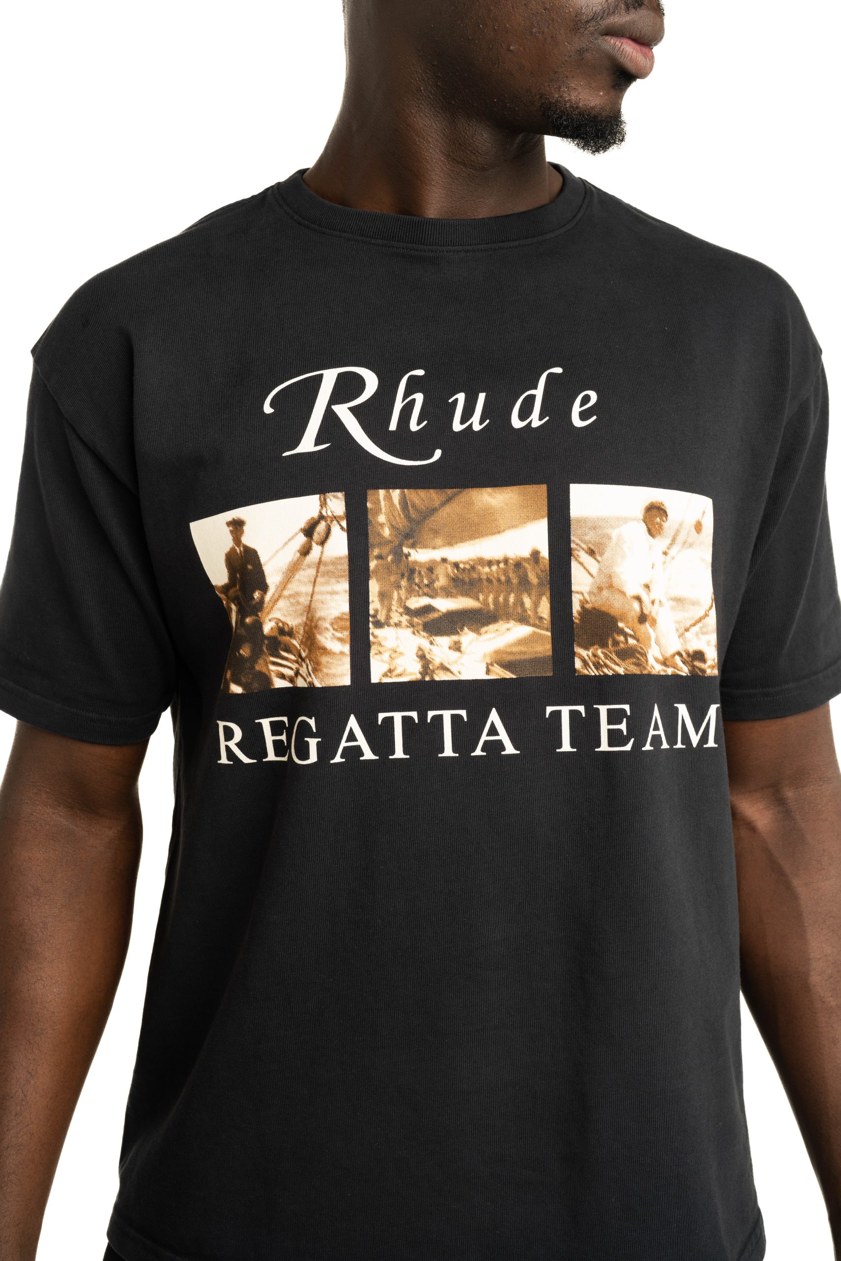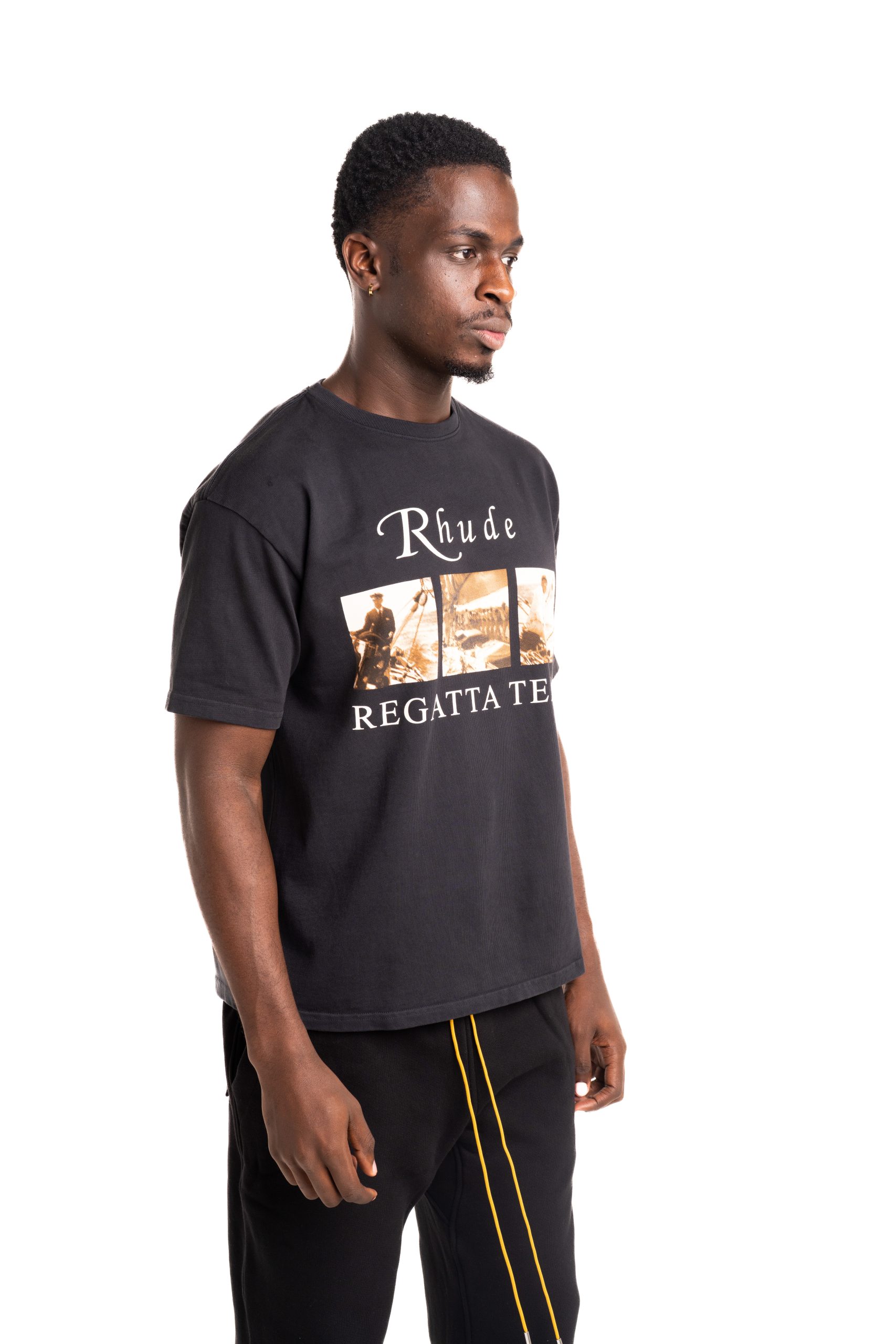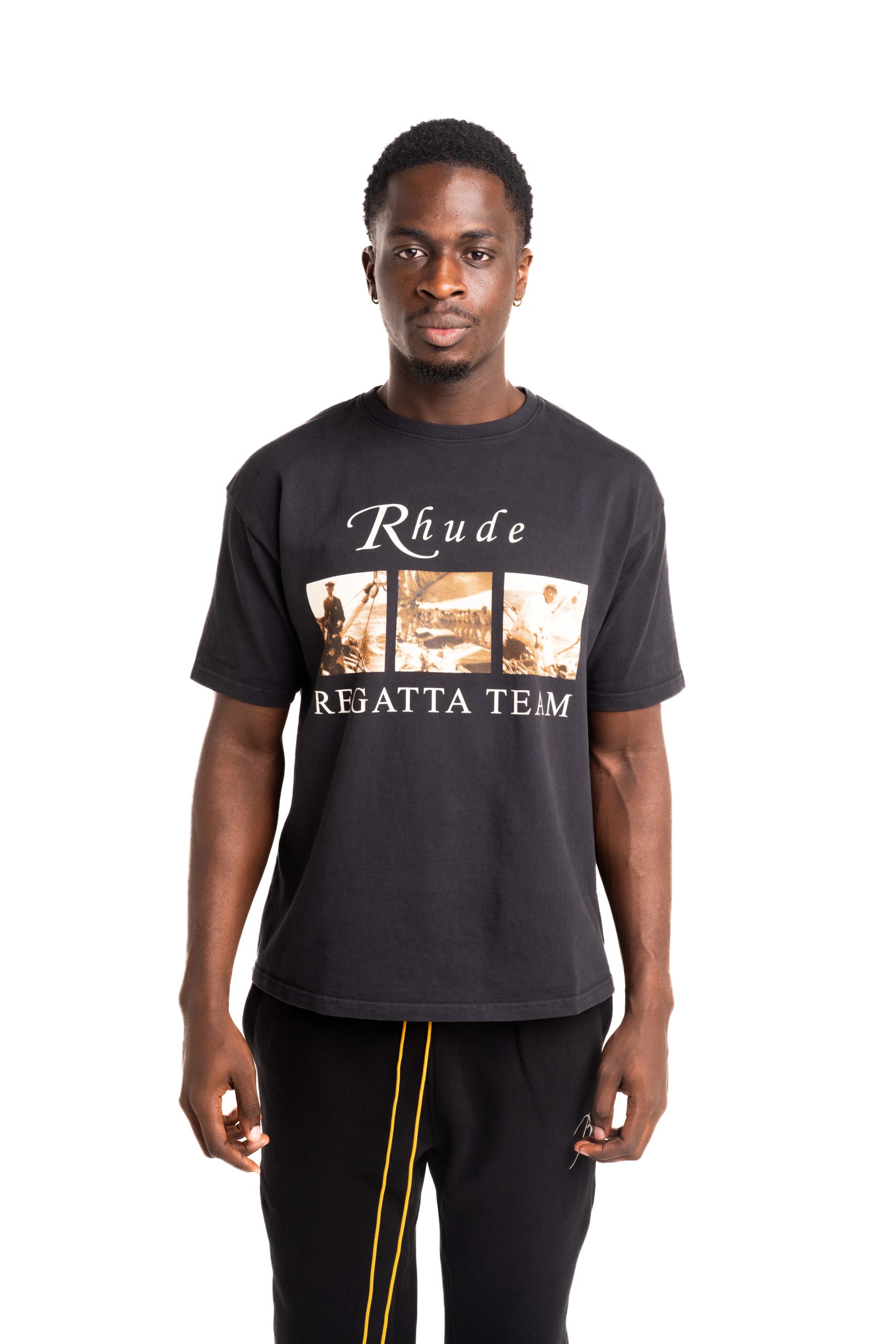 Rhude Men's Ramatuelle Intl Racing Tee Vintage Black/White/Yellow | RHPS26TT04012-6006